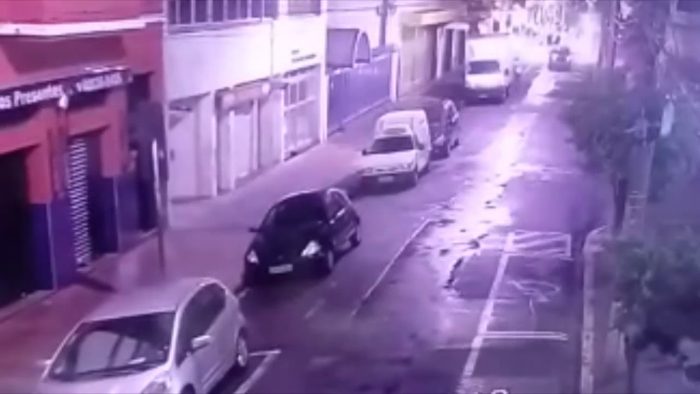 Uma câmera de segurança do projeto Olhos de Águia, flagrou o momento que o estrangeiro entrou no carro e acelerou com a porta aberta pela rua Cerqueira César, antes de ser abordado pela Polícia Militar. Depois de interceptado, ele foi contido e algemado. O boletim de ocorrência foi registrado como roubo consumado.