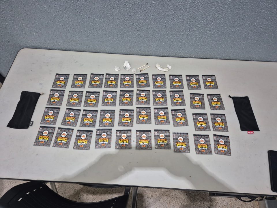 Depois de comer um lanche, ele teria retornado. Conduto, ao realizarem busca pessoal, os policiais rodoviários encontraram na rouba do suspeito 40 envelopes com ice, uma droga derivada da maconha, além de outras cinco porções de maconha.