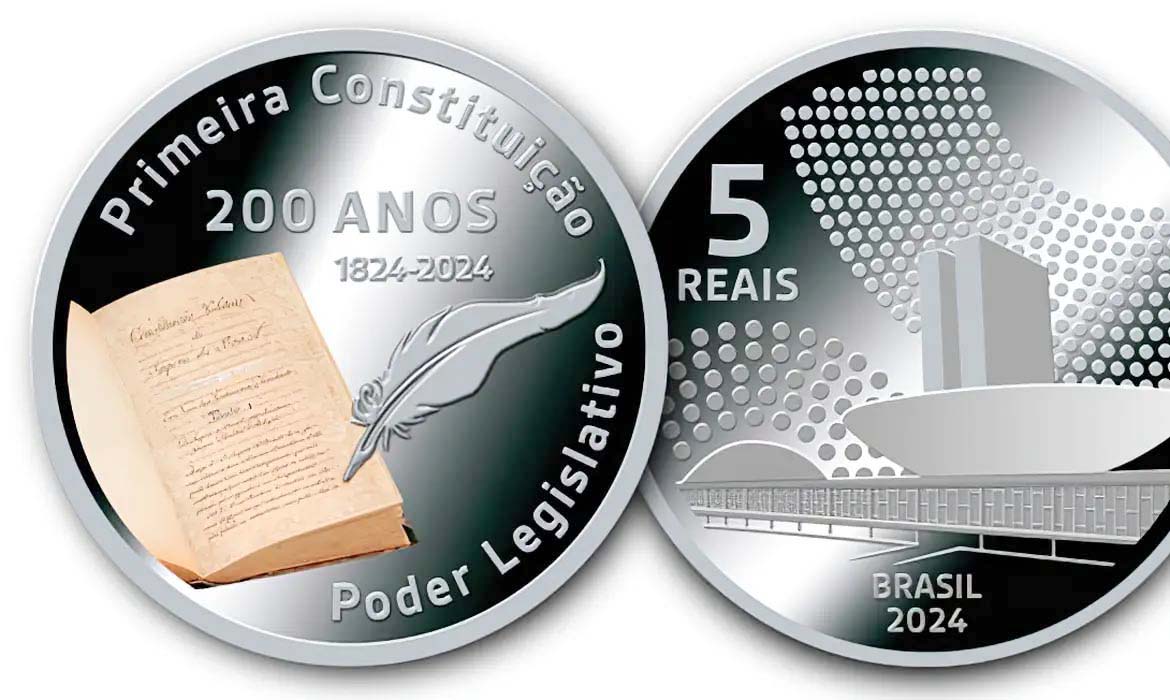 A primeira Constituição brasileira é datada de 25 de março de 1824, durante o Brasil Império. Segundo o BC, a moeda é uma homenagem ao Poder Legislativo, já que a Carta de 1824 implementou o bicameralismo no país, com a criação da Câmara dos Deputados e do Senado Federal.