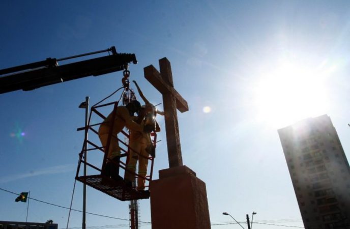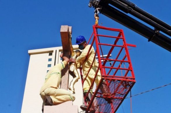 Restaurado, foi reinstalado na manhã desta quarta-feira (8), no cruzamento das Avenidas Nove de Julho e Portugal, em Ribeirão Preto, o monumento Cristo Crucificado. O Cristo havia sido retirado em setembro de 2019, no início das obras de readequação do cruzamento.