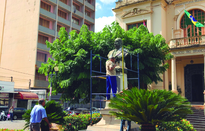 A herma do Barão do Rio Branco, primeiro monumento instalado em uma praça pública de Ribeirão Preto, passa por serviços de limpeza e restauração. A medida para preservação do busto sem braços instalado em frente à sede da prefeitura e ao palácio homônimo começou no início desta semana e não tem data para terminar.