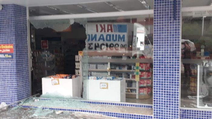 Testemunhas disseram que o indiciado usou uma grande pedra para arrebentar a entrada da loja. Apesar dos estragos, ninguém se feriu. A farmácia estava fechada no momento da invasão.