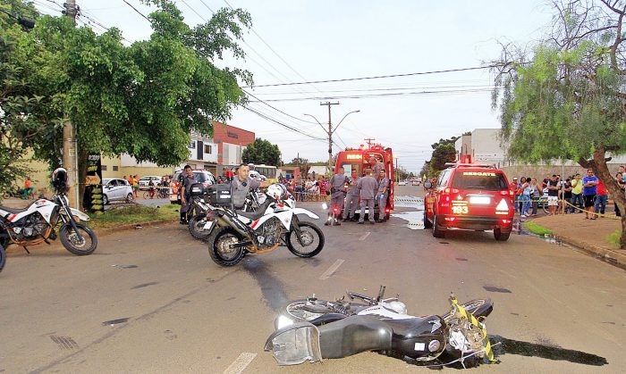 Ele sofreu ferimentos gra­ves ao colidir a motocicleta que pilotava contra outra moto, de um garçom de 52 anos, na tarde de terça-feira (27), no cruzamento da ave­nida Doutor Luís Augusto Gomes de Mattos com a rua Hermelindo Del Rosso, no Jardim Jóquei Clube.
