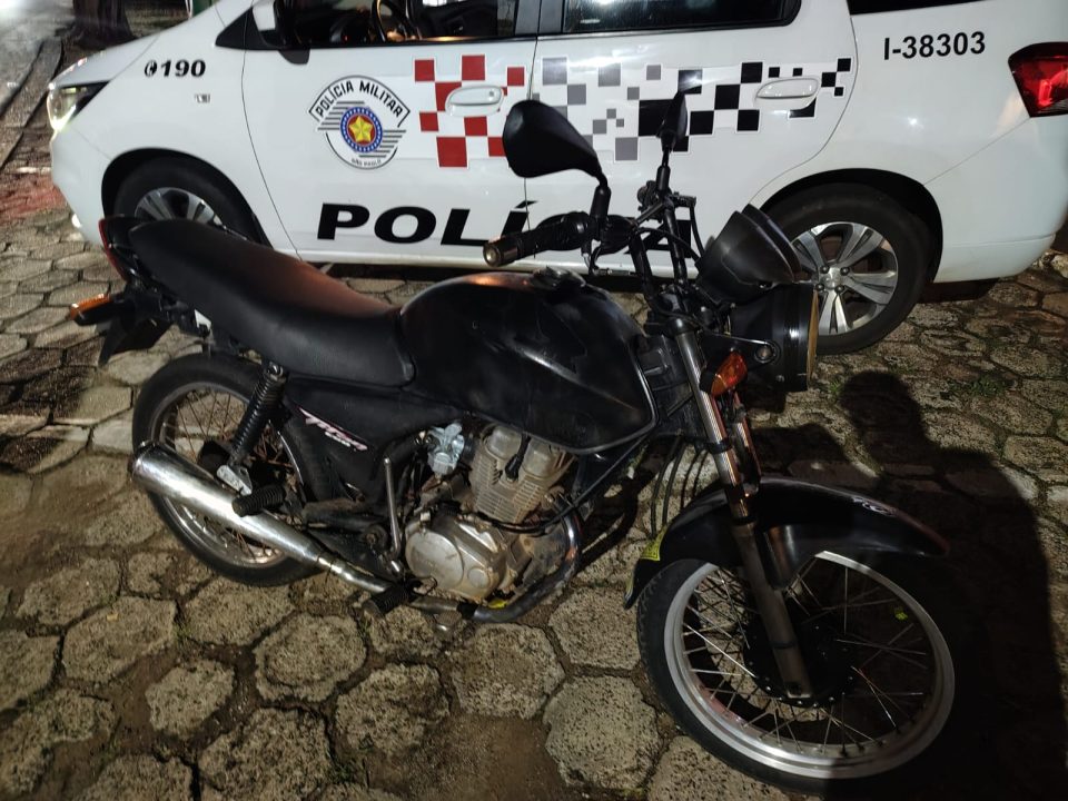 Uma moto, com indícios de adulteração, foi apreendida e motociclista é detido pela Polícia Militar (PM) durante patrulhamento, na noite do último sábado (8), na Rua Nelson Pereira Lopes no Centro em Porto Ferreira.