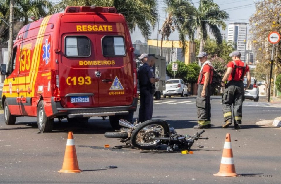 Um motociclista ficou ferido, na manhã deste domingo (06), ao chocar sua moto contra uma viatura de resgate do Corpo de Bombeiros. O acidente ocorreu por volta de 10h00 no cruzamento da Avenida Nove de Julho com Avenida Antônio Diedericsen, no Jardim América, zona Sul de Ribeirão Preto.