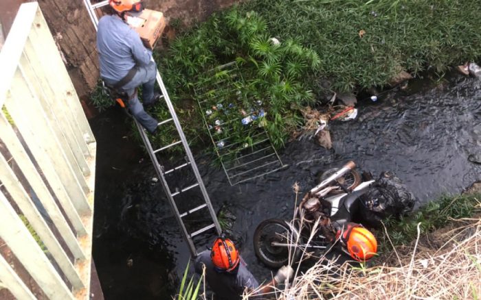 Na ocasião, o homem teria sido fechado por um outro veículo e acabou caindo no córrego. A motocicleta da vítima foi danificada. As causas que teriam motivado a queda ainda serão investigadas.