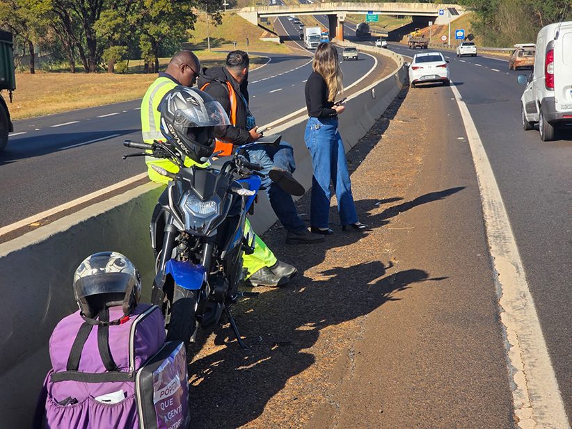 A moto vinha atrás e, para evitar a colisão traseira, desviou. O motociclista caiu na pista. Ele sofreu alguns arranhões e sentiu seu braço. Socorrido por uma unidade de resgate, foi levado para a Unidade de Pronto Atendimento (UPA) Leste. Seu estado de saúde não foi informado, mas havia suspeita de lesão no braço.