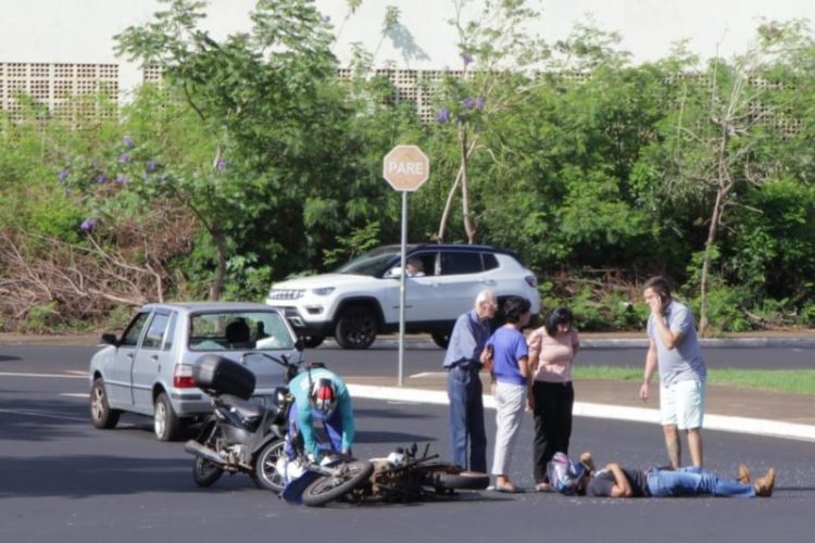 Com o impacto, o motociclista bateu com o corpo no vidro traseiro do carro, que estilhaçou. Depois, caiu na via. Ele ficou ferido e uma unidade do Serviço de Atendimento Móvel de Urgência (SAMU) foi acionada. Seu estado de saúde não foi informado. A Polícia Civil deve investigar para estabelecer as responsabilidades do acidente.