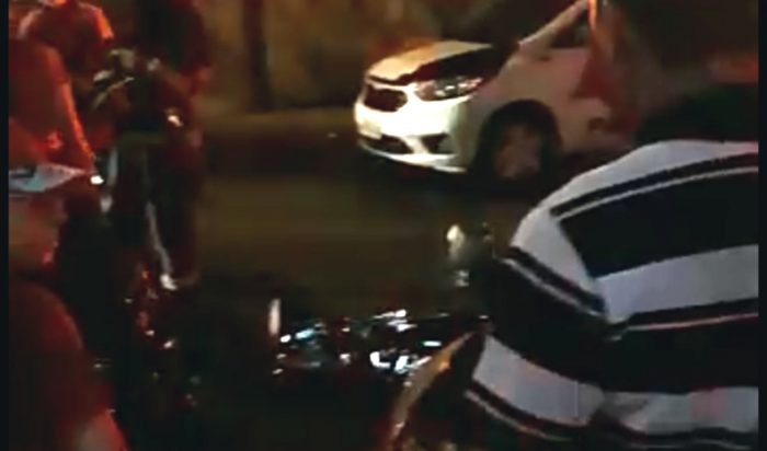 Acidente na madrugada deste domingo (1), envolvendo uma motocicleta e um carro, no cruzamento das ruas Japurá e Porto União, no Alto do Ipiranga, Zona Norte de Ribeirão Preto.