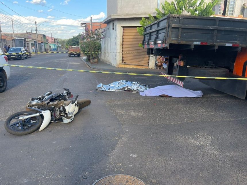 O motociclista avançou a demarcação de solo e batel em um caminhão que seguia pela via preferencial. Com o impacto, o jovem caiu e ficou debaixo do caminhão, que passou sobre ele com as rodas traseiras.