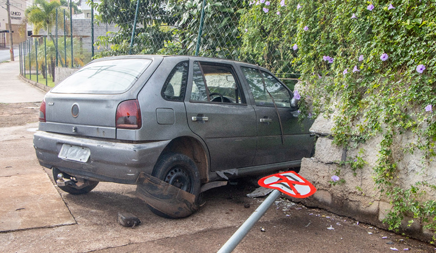 Um veículo Gol chumbo foi abandonado, após acidente ocorrido na madrugada desta segunda-feira (15). O carro ficou sobre a calçada, no entroncamento da Rua João Bim com Avenida Barão do Bananal, Parque Bandeirantes, zona Leste de Ribeirão Preto.