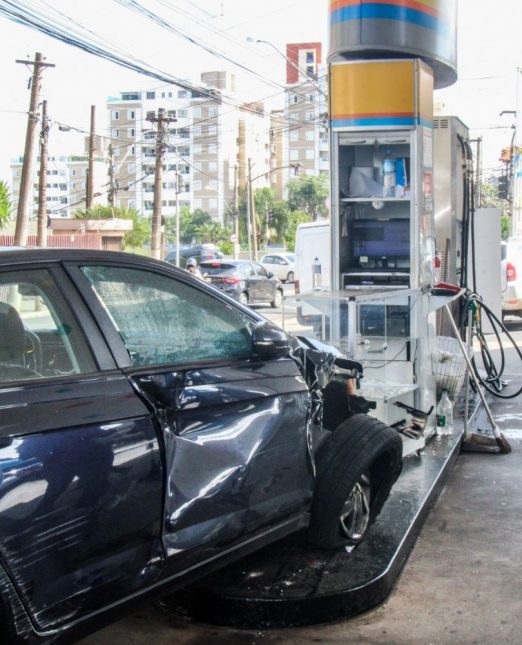 Motorista bate em cinco veículos e uma moto e só para em bomba de combustível