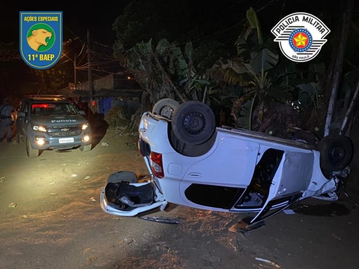 A motorista, todavia, descumpriu a ordem e fugiu do local, iniciando-se uma perseguição pelas ruas do Jardim Aeroporto. Ao fazer uma curva na Rua Americana, a motorista perdeu o controle do veículo e capotou.