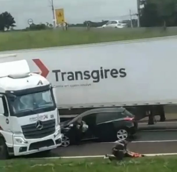 Os PMs desceram e tentaram conversar com o condutor, que estava com os vidros fechados, mas o homem não respondeu. Depois de alguns minutos, o homem arrancou com o carro na contramão, acessando a rodovia e seguindo pela faixa da direita de quem vinha no sentido correto.