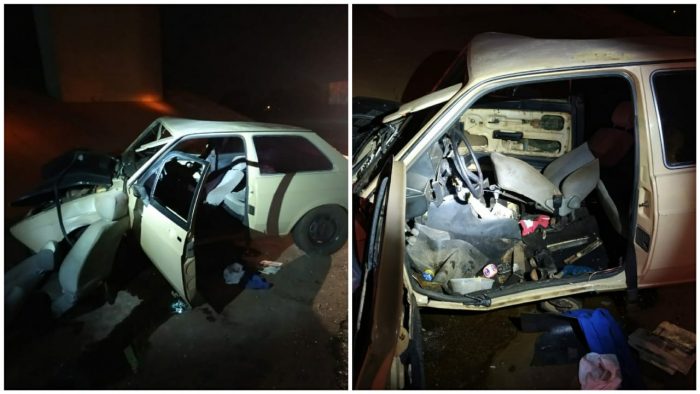 O VW Voyage que o conduzia colidiu na traseira de um caminhão baú vazio.