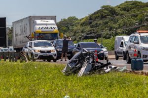 Já a motorista foi levada pra um hospital particular da cidade com ferimentos no corpo e as causas da batida serão investigadas pela Polícia Civil. O caminhão ainda vai continuar no local até a retirada por um guincho porque o eixo do veículo entortou. Ainda, segundo a concessionária, o trânsito já está liberado no local.