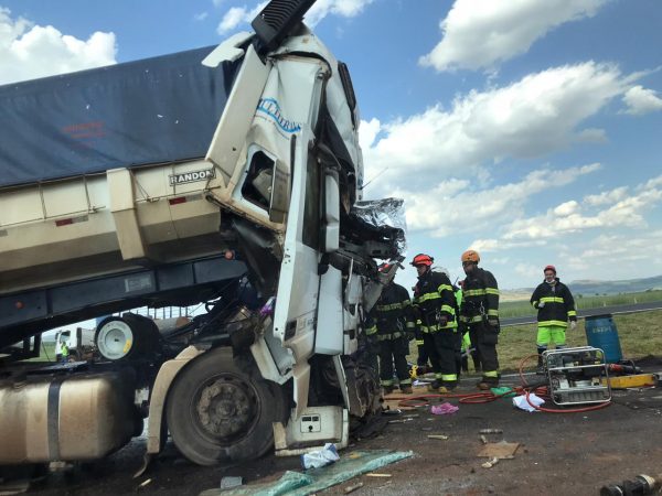 Segundo informações dos policiais bombeiros, um caminhão baú colidiu na traseira de uma carreta canavieira. O motorista que colidiu frontalmente morreu no local e um passageiro sofreu ferimentos leves.