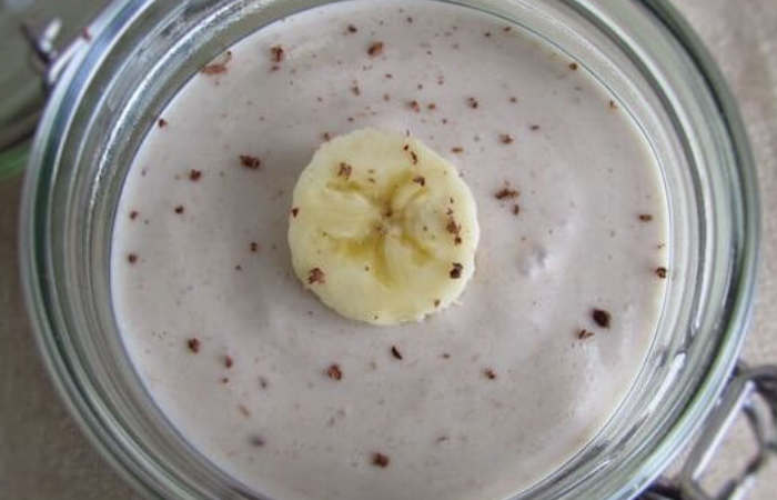 5. Sirva decorado com rodelas de banana e chocolate ralado.