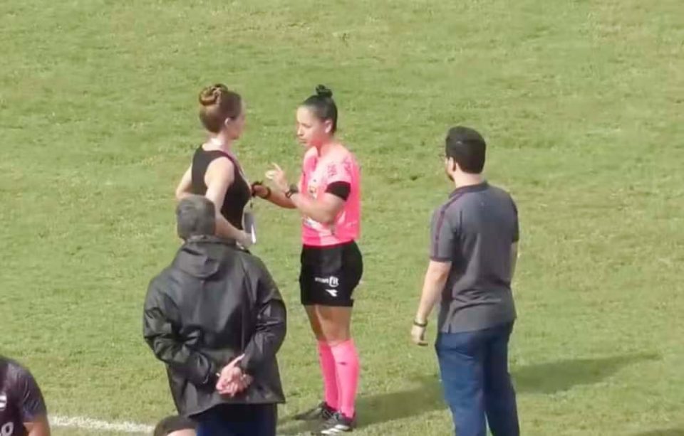 Segundo relato da árbitra da partida, Ana Caroline D’Eleutério de Sousa Carvalho, a médica do Nacional fez uma denúncia ao final do primeiro tempo