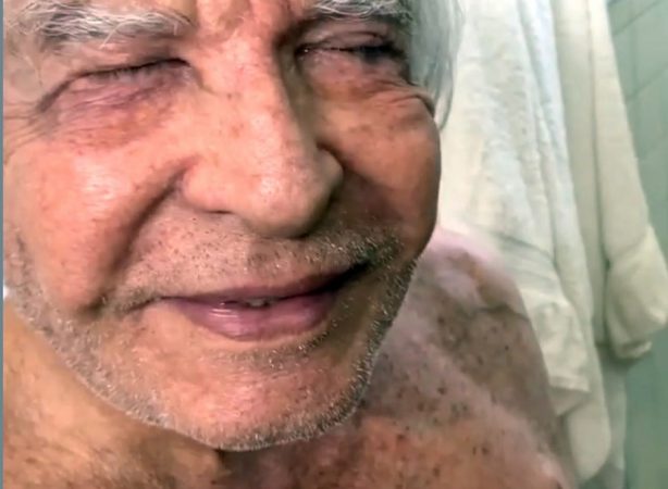 No vídeo, o jornalista aparece sentado sem camisa enquanto sua mulher passa um hidratante em seu corpo: “Acabei de fazer uma sauna […]. Ela agora tá passando creme em mim. Ando meio desidratado porque abusei muito do sol, tá vendo?”.