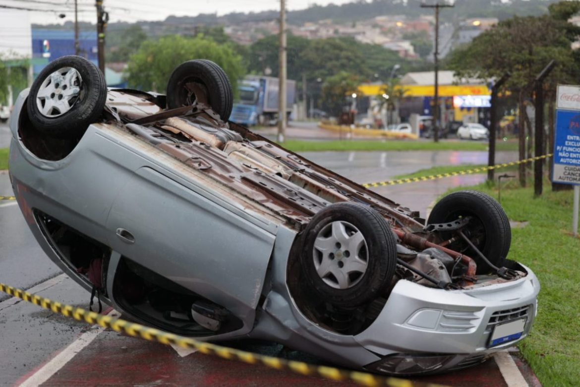 Ao fazer a conversão, a roda traseira do carro atingiu a dianteira do ônibus, que não conseguiu evitar a colisão. Com o impacto, o veículo capotou. Uma equipe do Serviço de Atendimento Móvel de Urgência (SAMU) foi acionada.