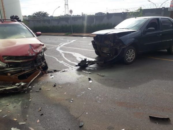 Dois carros colidiram frontalmente na manhã desta sexta-feira (22) na rua Porto Seguro, zona Norte de Ribeirão Preto. Uma mulher de 50 anos ficou ferida.