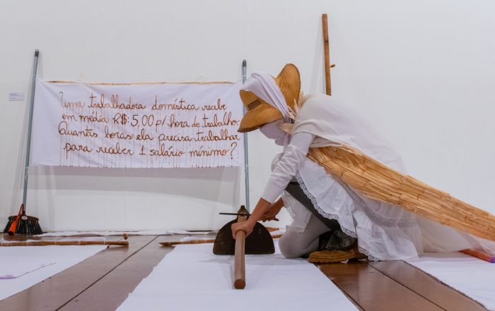 Uma das discussões terá como ponto de partida as vestimentas e trajes usados pelas mulheres trabalhadoras do canavial, combinadas a características de tradição de matriz africana que é uma fonte de estudo da artista. “A proposta da pesquisa se estrutura a partir de três pilares: o corpo, o melaço e a lâmina”, diz.