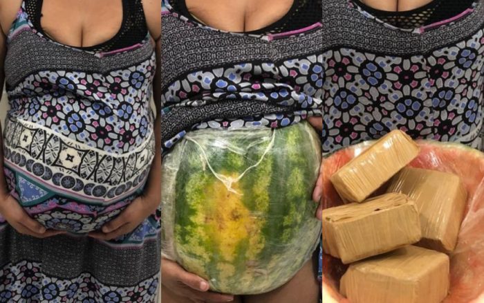 Em busca pessoal, para a surpresa da equipe, a barriga da mulher era falsa. A autora utilizava uma melancia para transportar quatro tijolos de pasta base de cocaína, de aproximadamente 2 Kg.