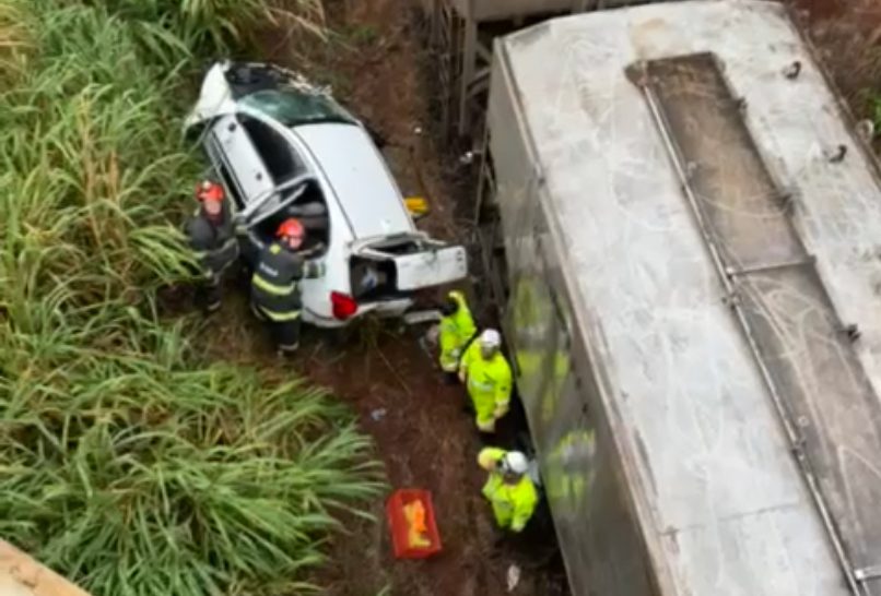 Duas mulheres ficaram feridas, no final da madrugada deste domingo, 23 de novembro, após se envolverem em um acidente de trânsito. O acidente ocorreu na Rodovia Anhanguera, no trecho urbano de Ribeirão Preto, quando o carro caiu em um barranco, parando ao lado de um trem que seguia na linha férrea.