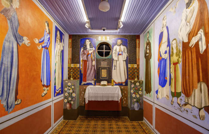 A publicação traz uma profunda análise das pinturas do interior da capela, onde Portinari retratou, em 1941, os santos prediletos de sua avó dando a eles a fisionomia de amigos e parentes. As obras foram feitas a têmpera, técnica que utiliza a mistura de água, cola e pigmentos em pó. Às dez horas, a instituição compartilha o poema “Retorno à Infância”, de Fátima Roque.