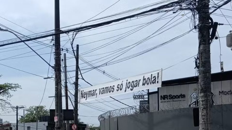 Uma faixa colocada na frente do CT do Santos nesta quinta-feira (13) apresentou cobranças a Neymar. A mensagem direcionada ao camisa 10 santista foi exposta na esquina das avenidas Waldemar Leão e Rangel Pestana, próxima ao CT Rei Pelé. “Neymar, vamos só jogar bola!”.