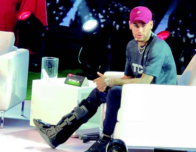 “Não tenho uma previsão exata para voltar aos treinos, faço o último exame, se não me engano, dia 17 de maio. Estou liberado para jogar por aí. Depende da evolução, dos exames. Mas os médicos de­ram a data a aproximada de 17 de maio”, afirmou Ney­mar, que participou de evento promovido por um dos seus patrocinadores, a companhia chinesa TCL na zona oeste da capital paulista. O jogador se tornou embaixador global da marca nesta terça-feira e foi ao compromisso com mule­tas e uma bota ortopédica.
