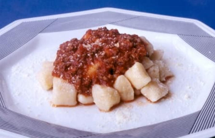 6. Em seguida, coloque os nhoques em uma travessa e cubra com o molho e polvilhe o queijo ralado.