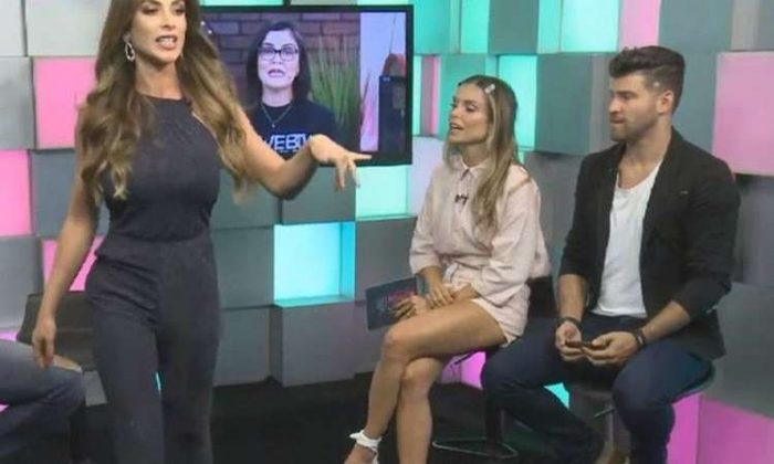 Nicole Bahls, então, levantou-se e ameaçou deixar o programa: “Não seja por isso, chama eles pra sentar aqui…”