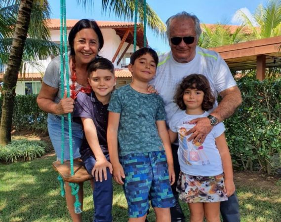 No Dia dos Avós, na Praia de Carneiros, em Pernambuco: Leila Calil Dib e Paulo Rezende Carvalheira, com os netos Miguel, Matheus e Sofia