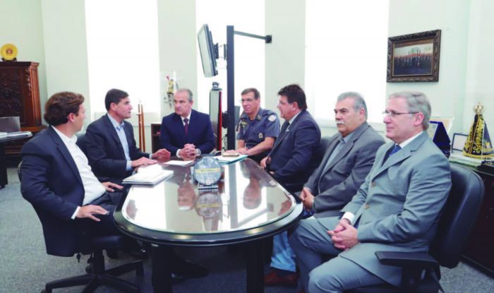 O prefeito Duarte Nogueira Júnior (PSDB) esteve reunido nesta quarta-feira, 7 de fevereiro, com o secretário de Segurança Pública, Mágino Alves Barbosa Filho, e com o coronel PM Nivaldo Restivo, comandante dos batalhões de Choque da Polícia Militar de São Paulo, para discutir a proposta de uma parceria entre a prefeitura de Ribeirão Preto, a Construtora MRV e a Secretaria de Segurança do Estado (SSP-SP) para implantação de uma unidade da Polícia Militar na Zona Leste da cidade.