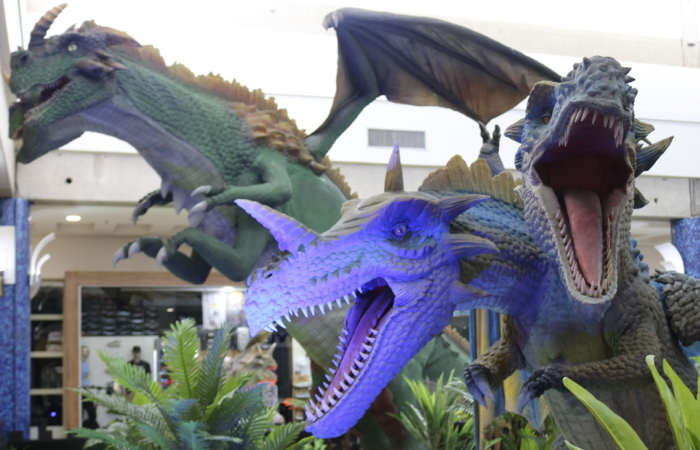 A “Exposição Internacio­nal – Dragões” traz réplicas com até sete metros de com­primento que emitem sons, possuem movimentos de tó­rax e asas e soltam fumaça, tudo projetado no habitat na­tural dos dragões. O público pode conhecer a história e os mitos dos dragões, sendo que o maior tem cinco metros de altura, e cada um deles tem um painel com informações específicas.