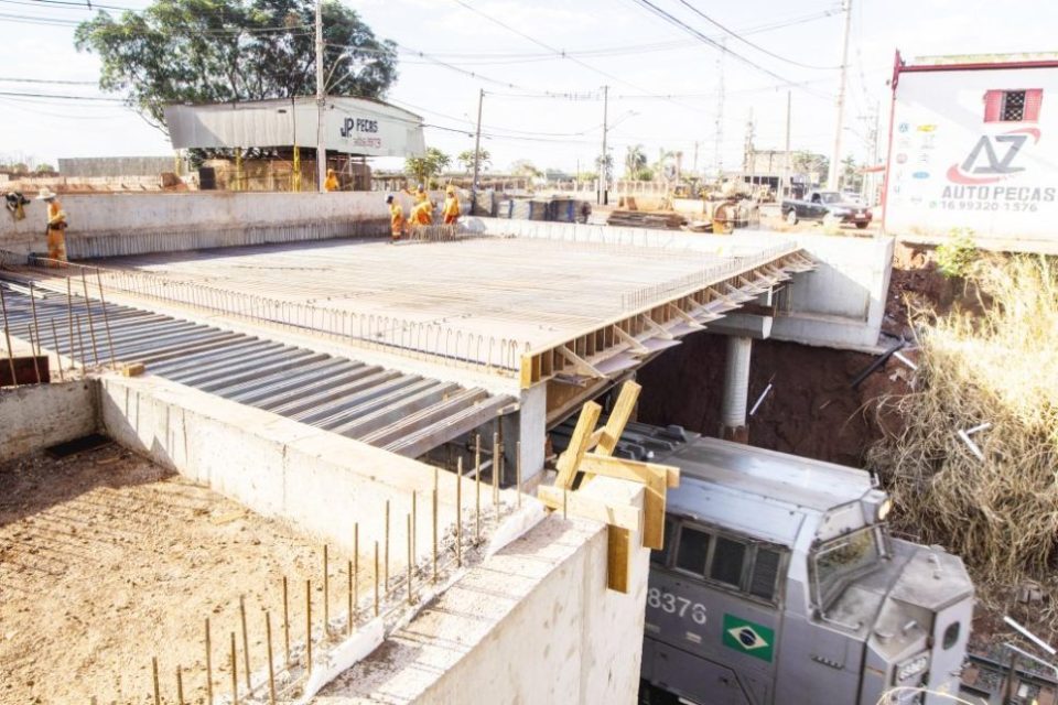 A construção do viaduto da avenida Brasil sobre a Mogiana, na Zona Norte de Ribeirão Preto, entrou em nova fase. Nesta semana, os trabalhadores começaram a instalar a rampa de acesso que conduzirá os veículos daquele ponto para a avenida Thomaz Alberto Whately, onde há outro viaduto do Programa Ribeirão Mobilidade.