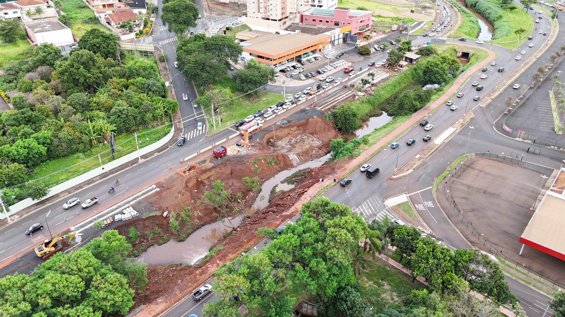 O bloqueio parcial continua na Maurílio Biagi: os condutores que seguem pela pista Bairro/Centro da Maurílio Biagi, no trecho próximo à obra, devem continuar a utilizarem somente as faixas de rolagem central e da direita a fim de evitar maiores transtornos, principalmente nos horários de pico.