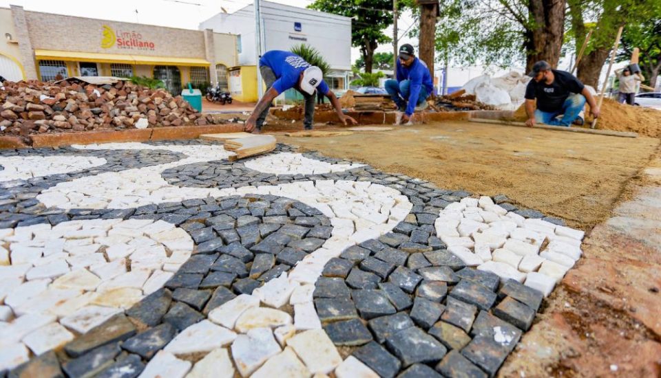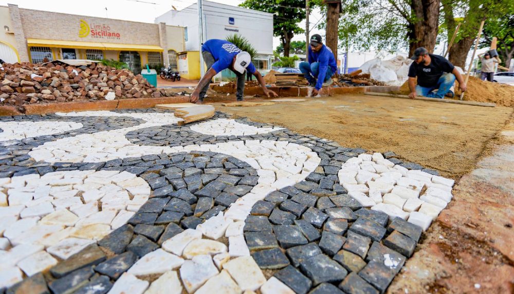 Em frente ao trecho da Nove de Julho que recebe o novo calçamento branco e preto, está a praça Salvador Spadoni, que também ganha os últimos retoques. Treze bancos de cimento já foram instalados, assim como as duas mesinhas com bancos redondos, também de cimento, que compõem o novo mobiliário da praça.