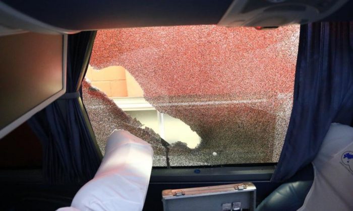 O ônibus do Grêmio foi apedrejado no caminho para o estádio Beira-Rio, em Porto Alegre, para o clássico diante do Internacional, pela nona rodada do Campeonato Gaúcho. A partida, marcada para 19h (horário de Brasília) deste sábado (26), foi inicialmente adiada para 21h. Por volta das 20h, a Federação Gaúcha de Futebol (FGF) oficializou o adiamento do jogo.