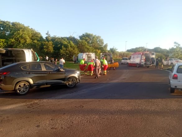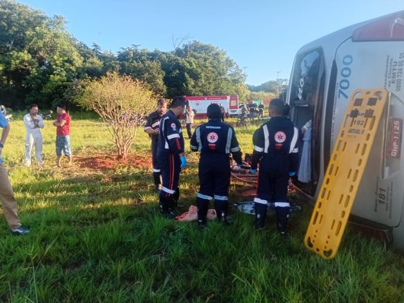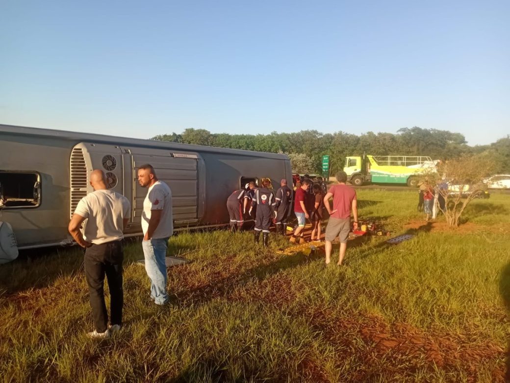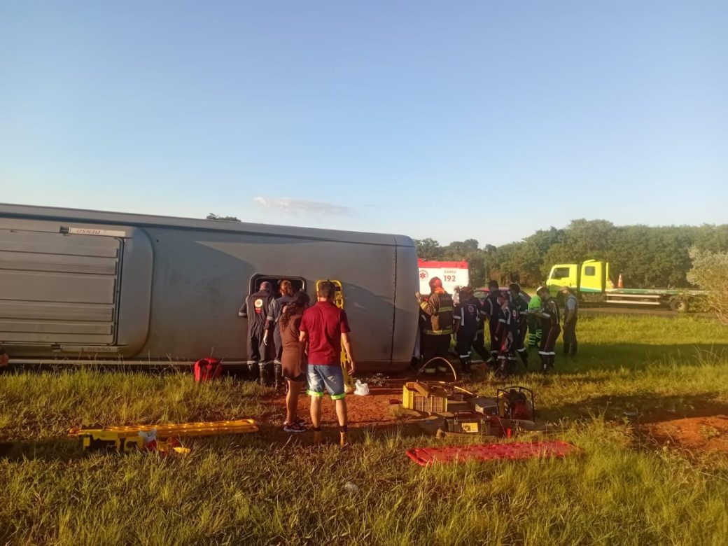 No total, havia cerca de 45 pessoas dentro do veículo. O Serviço de Atendimento Móvel de Urgência (Samu) foi acionado e segue realizando o resgate e atendimento às vítimas.