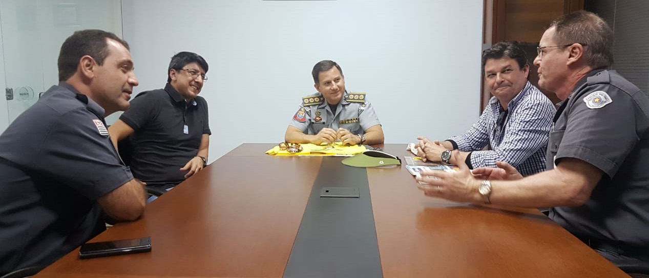 Os organizadores da Meia Maratona Tribuna Ribeirão, Eduardo Ferrari e Fabiano Ribeiro fizeram uma visita de cortesia ao Comandante da Polícia Militar (CPMI-3), de Ribeirão Preto, Cel. Carlos Alberto Machado, na tarde desta quarta-feira (11). O Comandante de CPMI-3 também estava acompanhado dos Majores Gritti e Tasso.