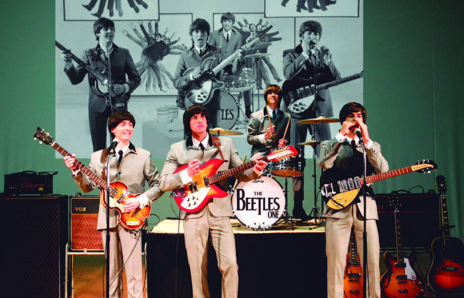Os detalhes impressionam. As imagens ao fundo criam a sensação de estar assistindo a um show dos Beatles ao vivo. Com os mesmos instrumentos, trejeitos de palco e ainda um canhoto, a performance da banda é uma viagem aos anos 60 através da imaginação. Durante os intervalos para troca de figurinos, são exibidos comerciais engraçados da década de 1960 e também imagens dos acontecimentos mais marcantes da época – como a chegada do homem à lua, em 1969, trazendo contexto histórico para o espetáculo.