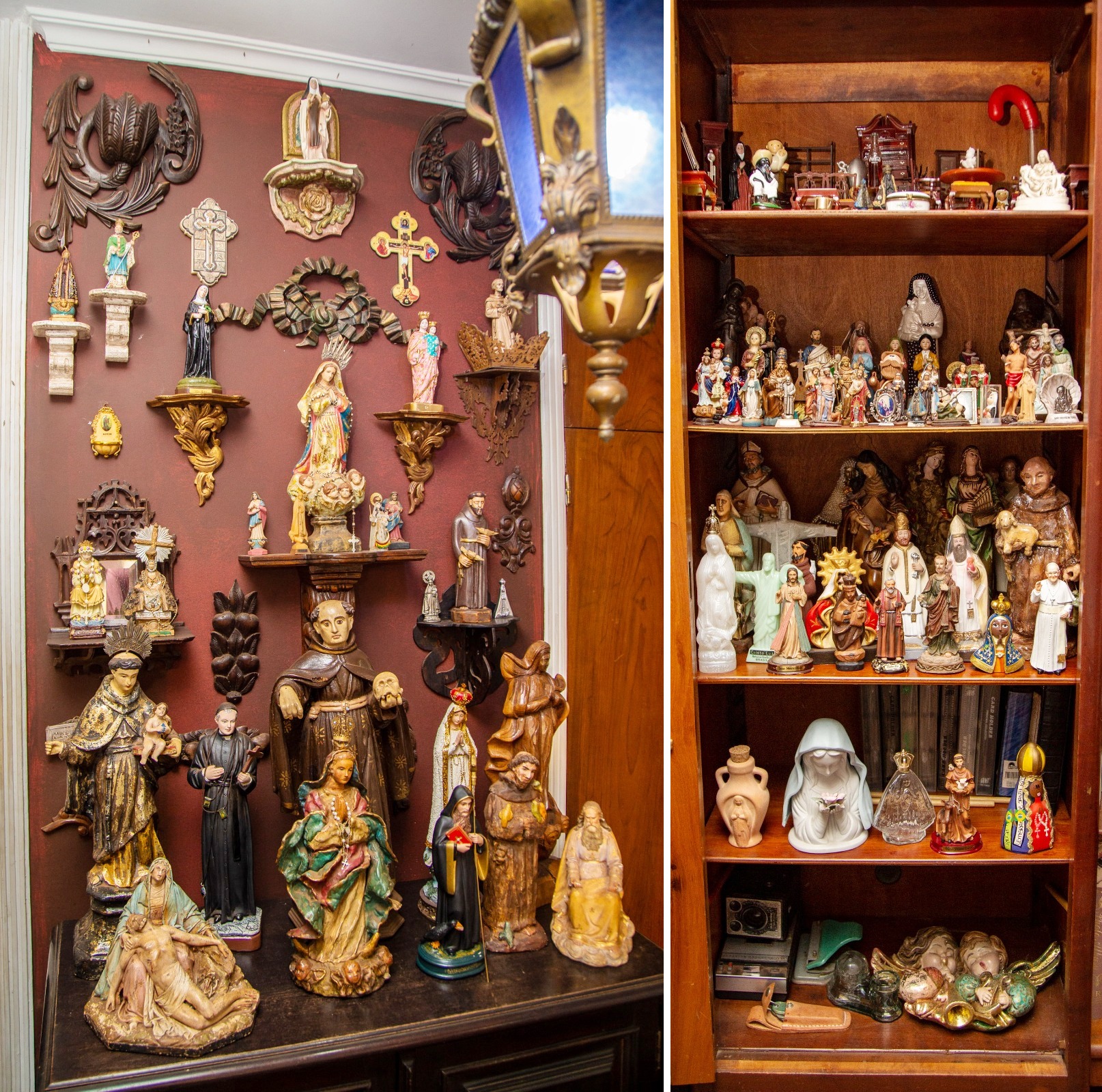 Mas uma de suas coleções mais inusitadas é a de imagens de santo. “Sou católico e apaixonado por imagens. Recebo graças 24 horas por dia, pois sou muito feliz e abençoado. Tenho uma família maravilhosa – pai que viveu até os 102 anos, mãe com saúde com 91 anos, irmãs e sobrinhos maravilhosos. Tios são como meus pais e primos são como irmãos. Tenho amigos de verdade, um emprego que adoro e um teto para morar. O que preciso mais? Só tenho que agradecer”, explica Amir.
