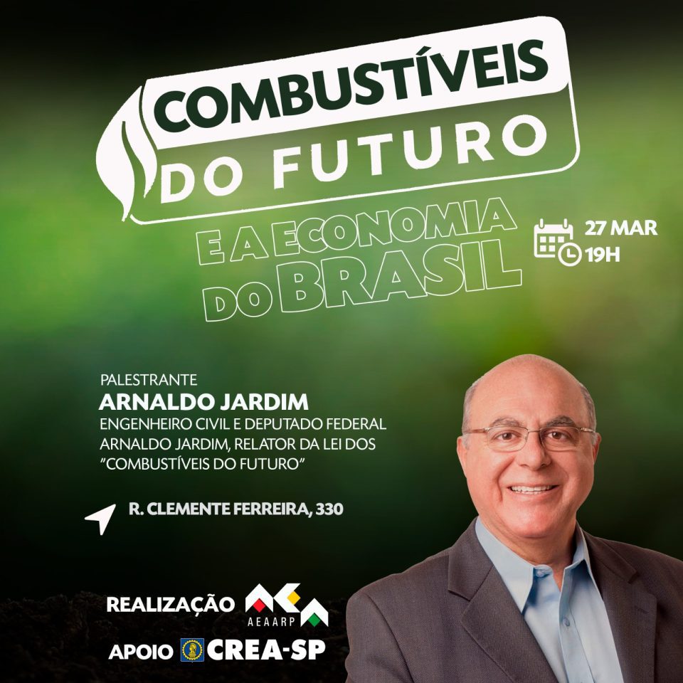 A Associação de Engenharia, Arquitetura e Agronomia de Ribeirão Preto (AEAARP) e o Fórum Permanente de Debate “Região Metropolitana de Ribeirão Preto do Futuro” promovem uma discussão essencial sobre a transição energética e seus impactos na economia brasileira.  A palestra “Combustíveis do Futuro e a Economia do Brasil” , será realizada pelo deputado federal Arnaldo Jardim, dia 27/03, às 19h na sede da AEAARP.
