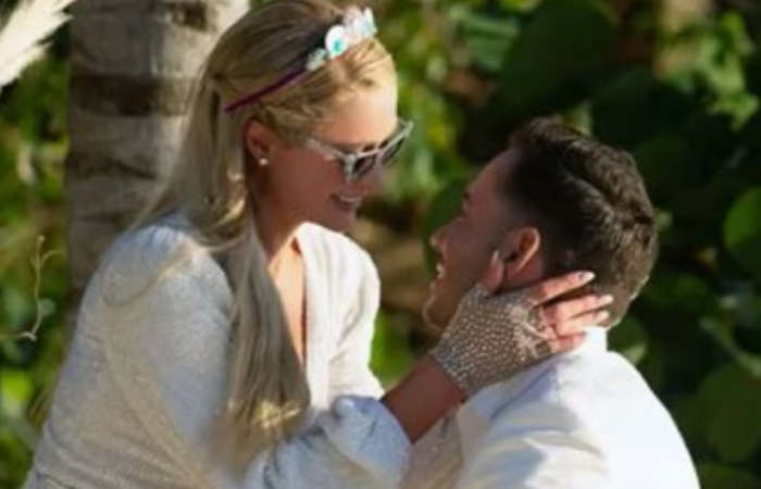 O pedido aconteceu durante uma viagem que o casal fez a uma ilha privativa, e foi confirmado pela própria Paris por meio de um post no Instagram.