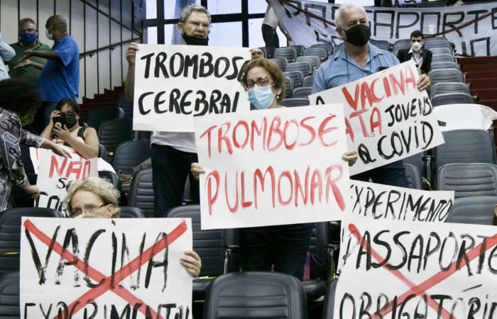 Porém, os cartazes apre­sentados na sessão da Câ­mara mostram exatamente o contrário do que diz o au­ditor. Os manifestantes, ne­gacionistas, exibiram frases como “morte súbita pós-vaci­na”, “não sou cobaia” e outras “pérolas” como se os imuni­zantes causassem trombose pulmonar, derrame cerebral (AVC) ou enfarte, mesmo diante de todos os estudos científicos já comprovados.