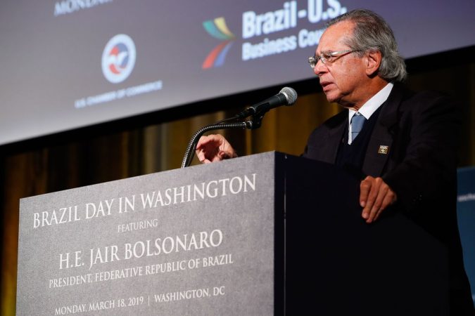 O ministro da Economia, Paulo Guedes, afirmou hoje (18), em conferência na Câmara de Comércio dos Estados Unidos, em Washington, nos Estados Unidos, que o Brasil está em busca de parcerias econômicas e que abrirá seu mercado para investimentos externos. O discurso foi realizado no evento “Brazil Day”, organizado pelo conselho empresarial Brasil e Estados Unidos, e Guedes aproveitou a ocasião para convidar os empresários do país a investirem em projetos brasileiros.