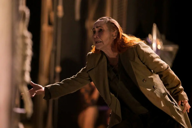 Em cena, as ações das duas tragédias correm em paralelo, até culminarem em um grande banquete. De um lado, o general romano Titus retorna vitorioso da guerra contra os bárbaros com a missão de escolher um novo imperador. Do outro, Lady Macbeth insufla o marido, também um militar, a matar o rei e usurpar-lhe o trono. “Concebi a personagem como uma mulher mítica, pensando nos elementos da natureza, no fogo. Como se ela fosse uma grande bruxa”, observa Djin. Aliás, a presença das bruxas na cena inicial de Macbeth serve como mote para a encenação, que busca instaurar uma aura soturna e mística. O escape para o sobrenatural, nesse caso, não deixa de ser o invólucro necessário de fábula para tratar do que se transformou em horror cotidiano.